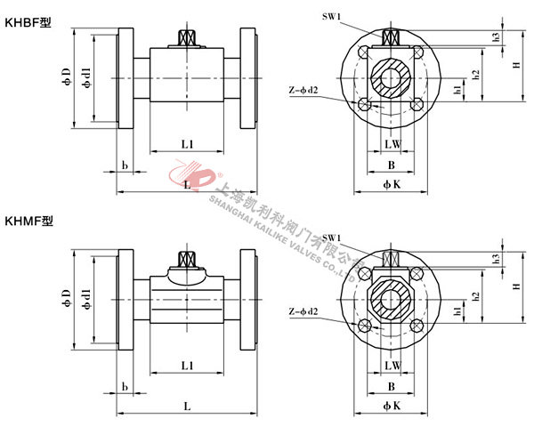 4、KHBF、KHMF法蘭式高壓球閥主要根據(jù)剖面、長度、高度、外形等作出說明。