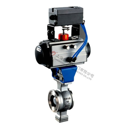 氣動(dòng)V型球閥是一種芯閥座采用金屬,或金屬對(duì)聚四氟乙烯密封配合的旋轉(zhuǎn)球閥,它將球閥和蝶閥的最佳控制特性結(jié)合成一體,既可用作控制調(diào)節(jié)閥,又可作關(guān)斷切斷閥。球芯上的V形切口與金屬閥座之間具有剪切作用,特別適用于控制高粘度,含纖維、固體顆粒及漿料等介質(zhì)。結(jié)構(gòu)制造紙工業(yè)的紙漿顯得尤為優(yōu)越。閥門的流通能力大、壓力損失小、且介質(zhì)不會(huì)沉積在閥體中腔,閥門不僅具有近似等有分比的流量特性、可調(diào)范圍大,最大可調(diào)比為100:1,還具有精確調(diào)節(jié)與可靠定位的功能。