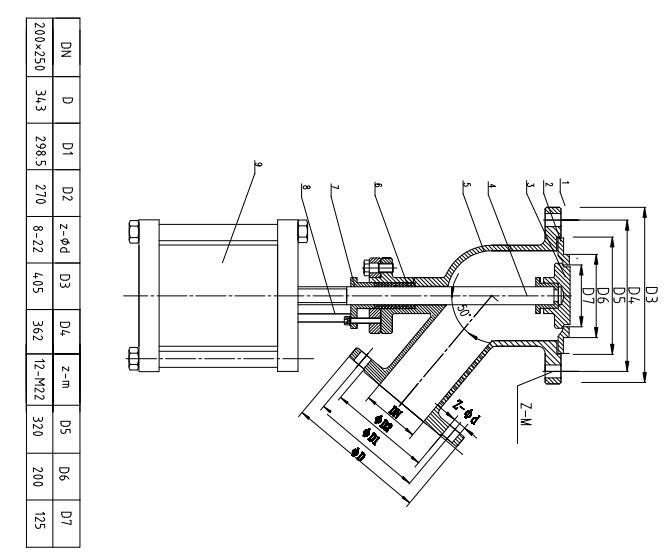 國標(biāo)法蘭DN250,內(nèi)孔是250mm,當(dāng)用戶直接把國標(biāo)法蘭焊在反應(yīng)釜底的時(shí)候,我們的下料口并不是250mm,我們還需要一個(gè)閥座外徑為250mm,內(nèi)孔為180mm套在反應(yīng)釜底部法蘭,這時(shí)留給閥板的位置只有直徑為180mm,則下料口直徑為180mm。假如由廠家提供反應(yīng)釜底下的法蘭,廠家提供的DN250法蘭,內(nèi)孔會(huì)開設(shè)到285mm,在套上外徑為285mm的閥座上去,內(nèi)孔留有200mm。