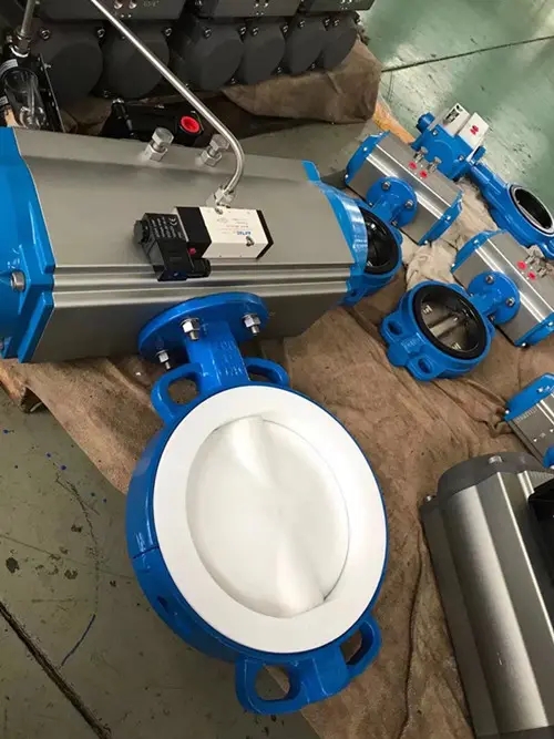 D671F46氣動(dòng)襯氟對夾蝶閥廣泛用于防腐管道系統(tǒng)上。主要用以實(shí)現(xiàn)閥門的開啟、關(guān)閉與調(diào)節(jié)。全襯聚四氟乙烯(F4)、聚三氟氯乙烯(F3)和聚全氟乙丙烯(F46)氟塑料襯里閥,具有耐腐蝕、無泄